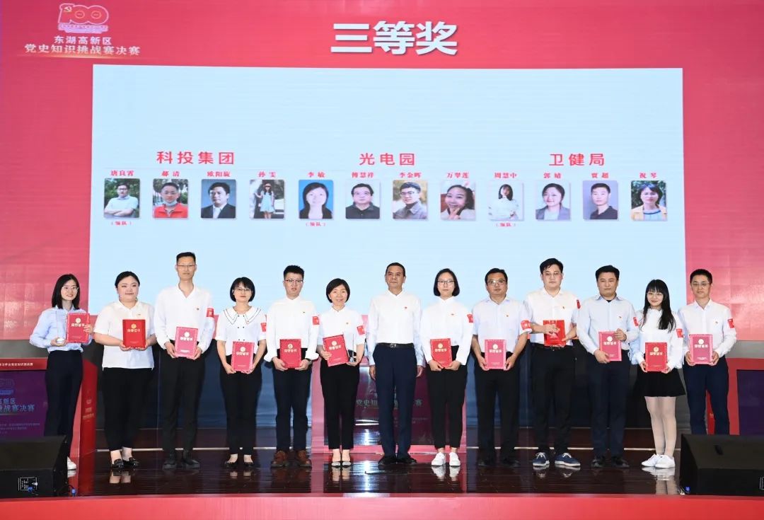 5月21日下午,東湖高新區(qū)黨史知識競賽挑戰(zhàn)賽決賽舉行,市紀(jì)委監(jiān)委派出東湖高新區(qū)紀(jì)檢監(jiān)察工委書記李軍,市委宣傳部副部長、市黨史學(xué)習(xí)教育辦公室宣講工作組組長吳天勇,東湖高新區(qū)管委會副主任宋治平、張傳遠,東湖高新區(qū)管委會總經(jīng)濟師李首文,東湖高新區(qū)黨工委政法委副書記曾祥華,市工科院黨委書記、院長程百煉出席活動。